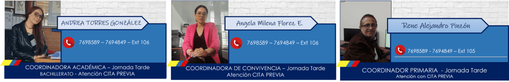 - Horario de atención a Padres de Familia Primaria: Los profesores atienden todos los días de 5.30 a 6.20 p.m. previa solicitud del acudiente – Coordinador Rene Pinzón.